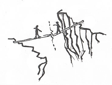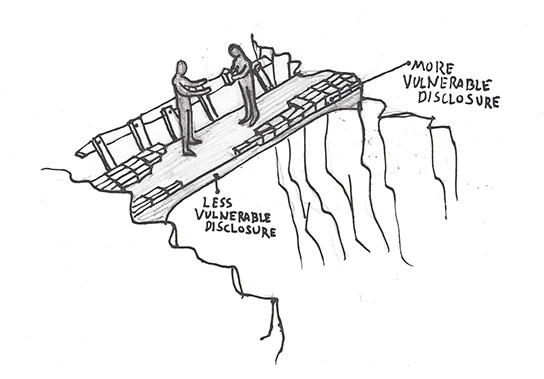 If we first lay something too delicate across the chasm, if we share a story or a feeling bound up in too much fragile hope or hurt or personal values, then we risk this feeble support snapping beneath us as we step out upon it together.